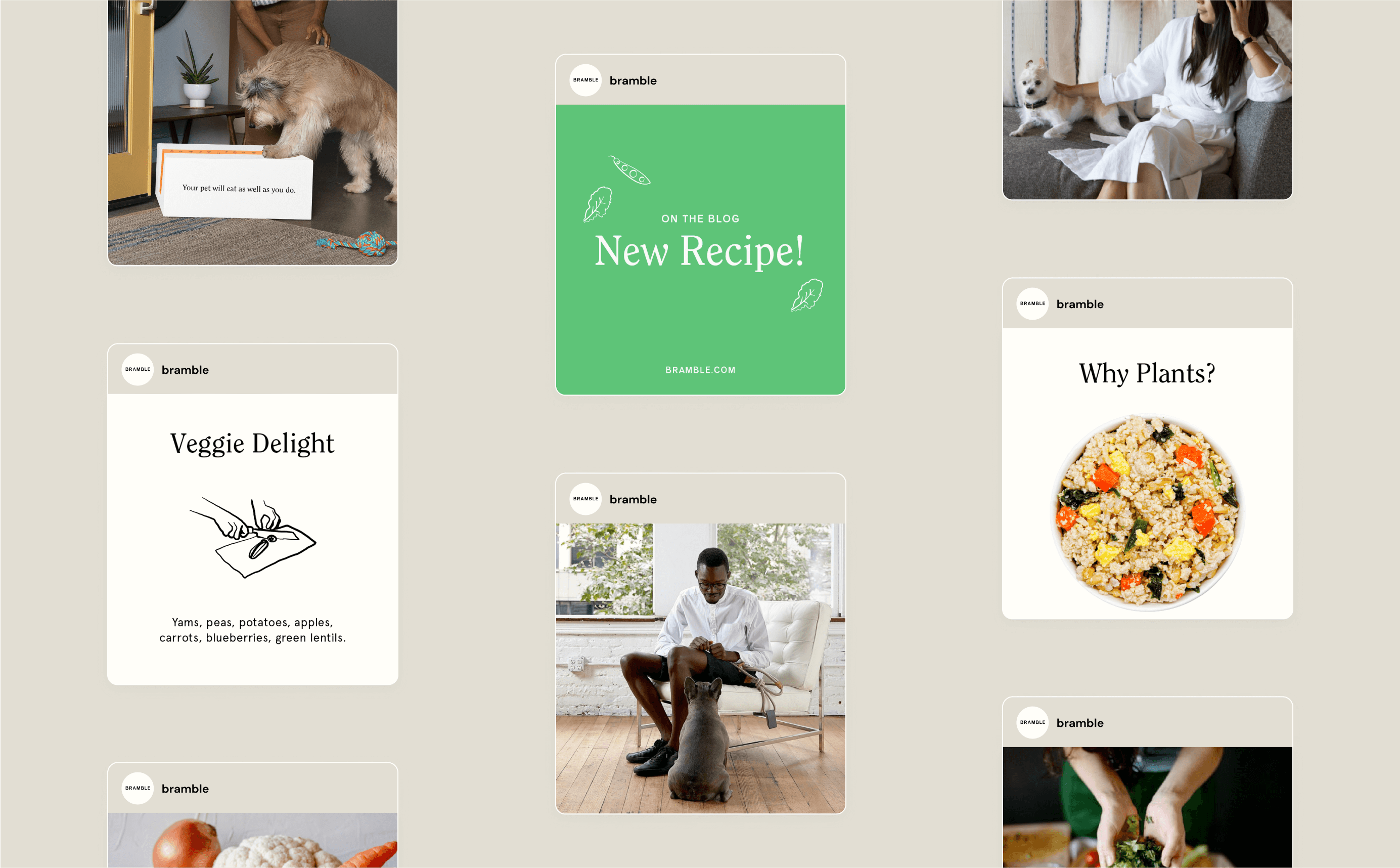L’identité visuelle positionne Bramble comme un choix moderne et fiable pour les propriétaires de chiens sensibles à la fois à l’éthique et à l’esthétique.