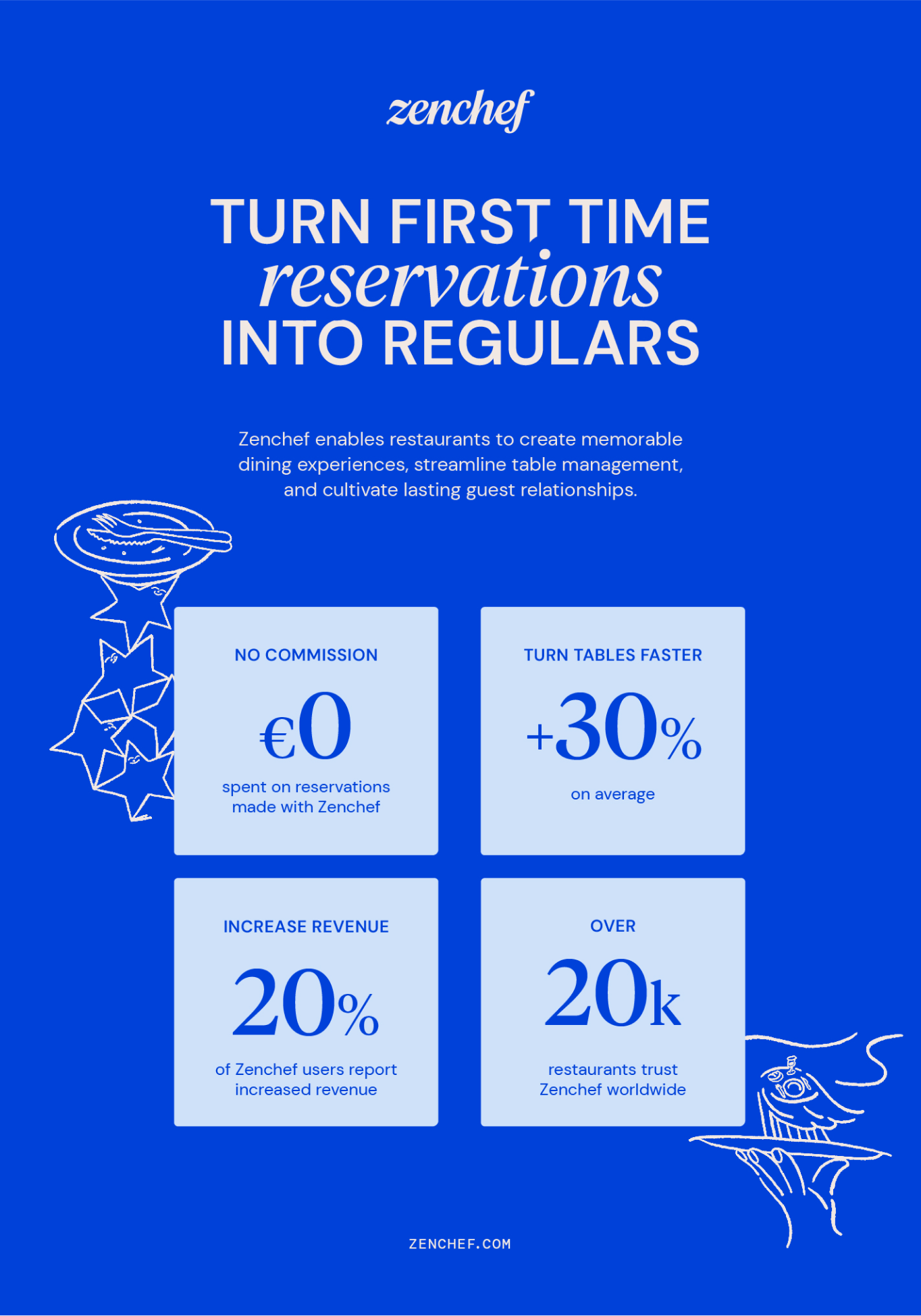 Zenchef is a platform empowering restaurants to boost profitability through crafting seamless online experiences, optimizing operational efficiency, and building strong guest relationships.